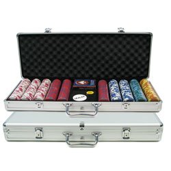 The NEXGENT Series 8000 Poker Chips"The next generation of poker chip manufacturing technology." EDGE SPOT Las Vegas Poker ChipsThese 12 gram Vegas Style Chips are 39 mm diameter casino sized chips and are designed with the authentic casino style, weight and unique edgespot design. The words "LAS VEGAS NEVADA USA" are embedded in the outer diameter of the chip.The Series 8000 Chips incorporates a unique patented process giving them the soft feel of a clay surface which makes them the most authentic poker chip available on the home gaming market. Additionally, this same process allows for multi-colored edgespots, resembling that of casino clay poker chips.With an inconspicuous metal insert, these exclusive new chips were created by the use of the latest technology to produce the real sound and coloration of an actual Casino chip. When our engineers produced these chips, we couldn't believe they had an insert - they sound that great! Additionally, its recessed center allows for the application of custom-designed 1" labels.With a choice of SEVEN assorted two-tone colors, this exclusive chip line is great for any casino or your home gaming table!Your Chips will be protected in this aluminum case. It will provide the most protection for your investment. It is made of heavy duty, yet lightweight aluminum available in brilliant silver. The interior is black velour with space for 500 chips, 2 decks of cards and 3 buttons. The handles are are securely riveted for long lasting use. This is the chip case that will last a lifetime.We have INCLUDED IN THIS SET: 2 Decks of Playing Cards and 3 buttons - dealer, big blind and little blind. Playing cards depicted are subject to change without notice. It is at our discretion to replace playing cards with a similar product of equal or higher quality at any time.The color and quantity of chips shown are the most popular and have been pre-selected for you, however, you can make changes per your requirements.C Copyright 2004 All RightsAvailable at Amazon Check Price Now!