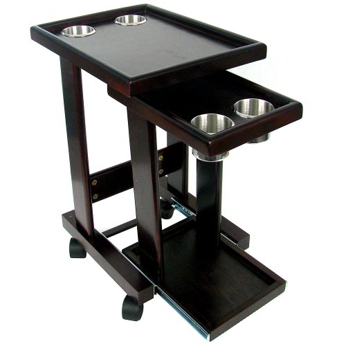 This Mahogany Finish Drink Cart is just like the ones you see in the poker rooms around the world.Take the drinks off your precious poker table and place them this cart. Slide out the bottom layer to reveal two more cupholders for back-up! Securely fits your favorite standard sized canned or bottled beverage! The casters make it easy to roll to wherever you would like.Can be used in between seats in vans also.Features: * Mahogany Finish * 360 degree rotating wheels * 4 cup holders * 23.5 inches tall * 13 inches wide * 17 inches deepSome assembly requiredAvailable at Amazon Check Price Now!
