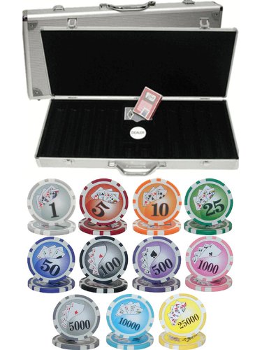 These durable 11.5 gm poker chips are some of the nicest you will ever see. It has a full color inlay with a Yin Yang design, and is crafted out of a high grade composite material.These inlay design of these chips either has a Royal Flush or 4 of a Kind depending on the denomination (,000 chips has 4 Jokers). The best thing about these chips is that there is no $ symbol making these chips very versatile (can use to represent cents or as foreign currency).Available in 11 different denominations, including , , , , , 0, 0, 00, 00, ,000, & ,000 and each denomination has its own color.Your Chips will be protected in this aluminum case. It will provide the most protection for your investment. It is made of heavy duty, yet lightweight aluminum available in brilliant silver. The interior has space for 500 chips, 2 decks of cards, a dealer button and 5 dice. The handles are are securely riveted for long lasting use. Dimensions: 21.75 x 3.25 x 9.25. This is the chip case that will last a lifetime.Your Set Will Include:- 500 NEW poker chips (you may choose colors and quantities in multiples of 25 - if not, we will ship with most popular)- Heavy Duty Aluminum Case- 2 decks of playing cards- ADDED BONUS: FREE Dealer ButtonNOTE: PLEASE CHOOSE QUANTITIES/COLORS OF CHIPS IN MULTIPLES OF 25 VIA EMAIL AFTER PURCHASE. SUBJECT TO AVAILABILITY.Available at Amazon Check Price Now!